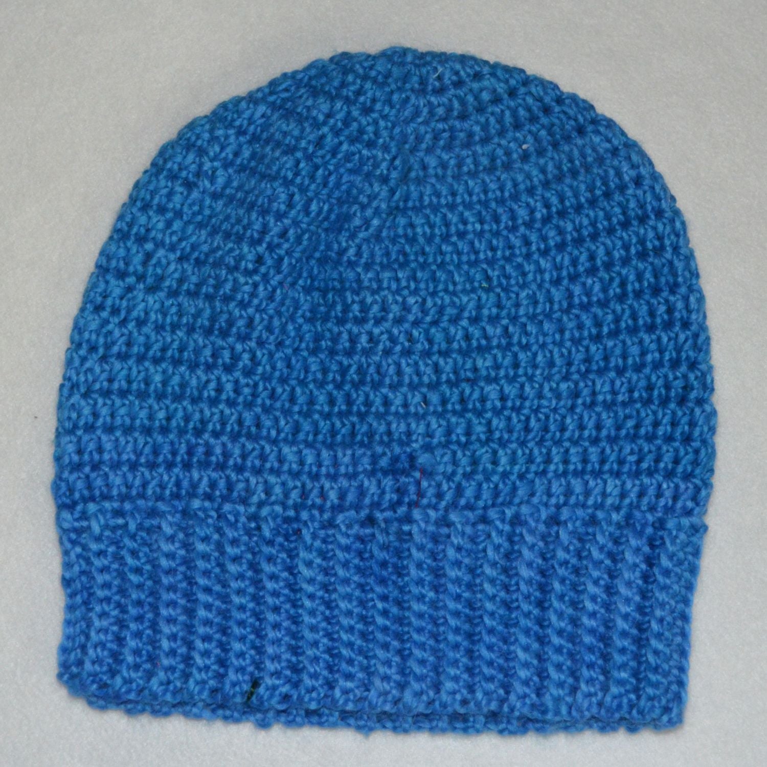 Do you love blue? This comfy crocheted hat will let the world know, whether you wear it with a folded brim or as a slouchy beanie. Fits a head from 19-21 inches.